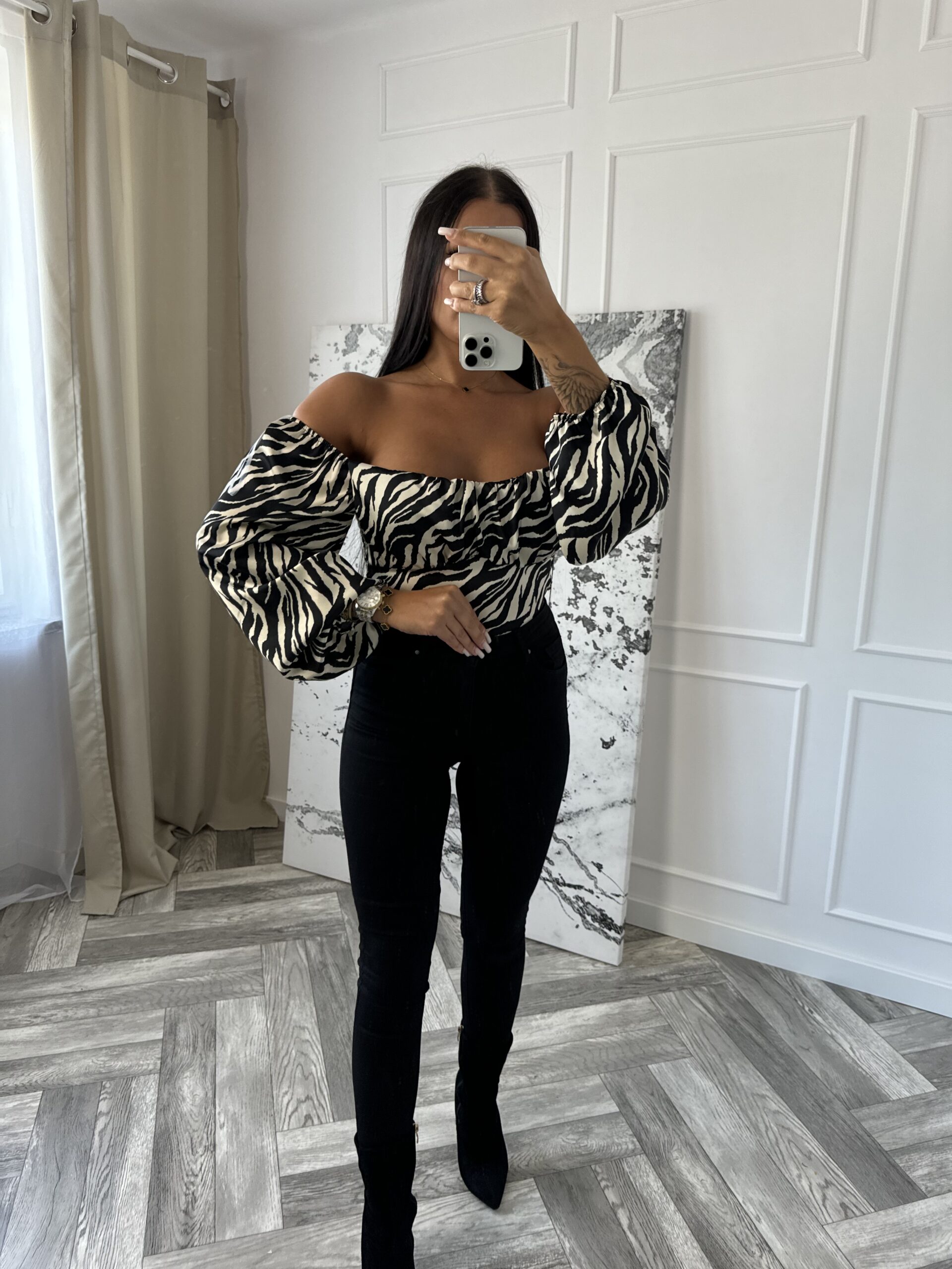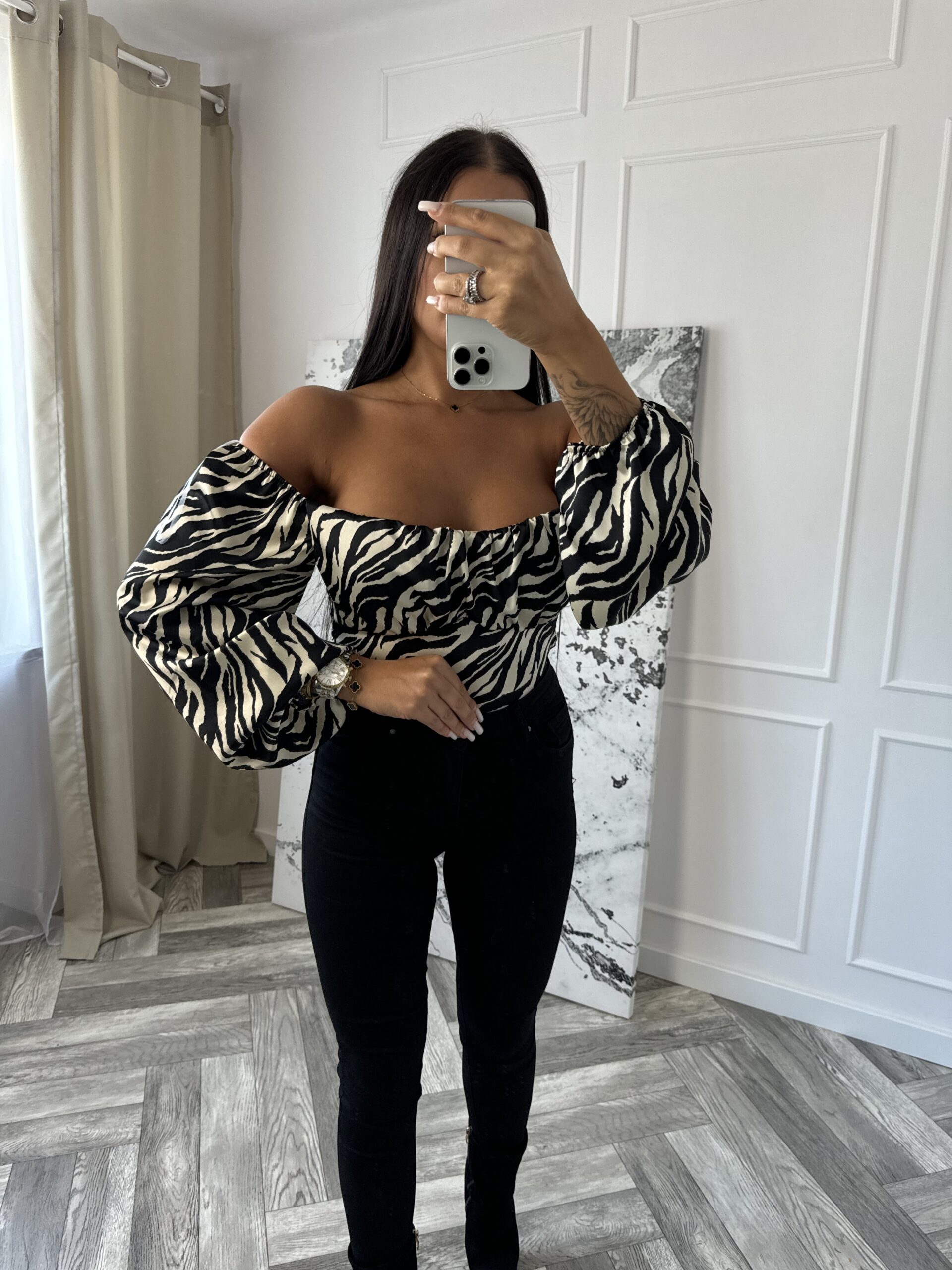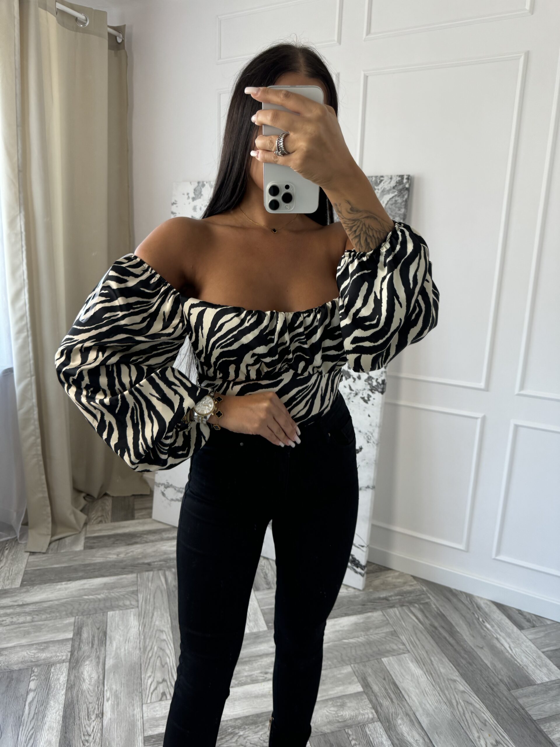 Bluzka WILDING to synonim odważnego stylu z nutą elegancji, która przyciąga wzrok. Wykonana z wysokiej jakości materiału, oferuje komfort noszenia przez cały dzień, a bufiasty krój rękawów dodaje objętości i unikalnego charakteru. Wzór zebry, który zdobi bluzkę, jest idealny dla kobiet, które chcą wyróżnić się w tłumie i podkreślić swoją indywidualność. Ta bluzka doskonale komponuje się z różnymi elementami garderoby, od jeansów po eleganckie spódnice, tworząc stylizacje na każdą okazję.
