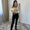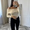 - Zmysłowy design: Biała bluzka z odkrytymi ramionami, która subtelnie podkreśla kobiecość i dodaje stylizacji elegancji.