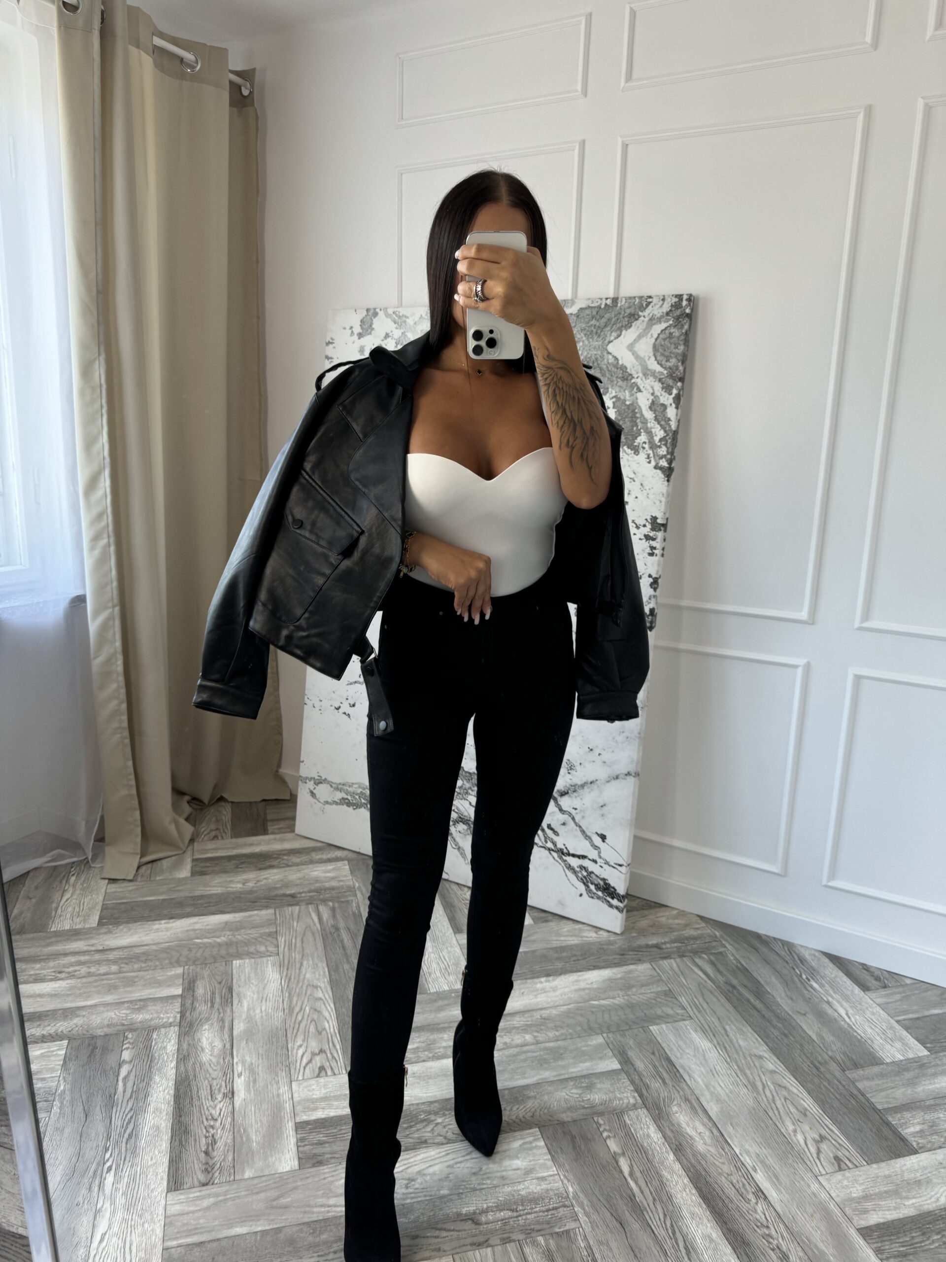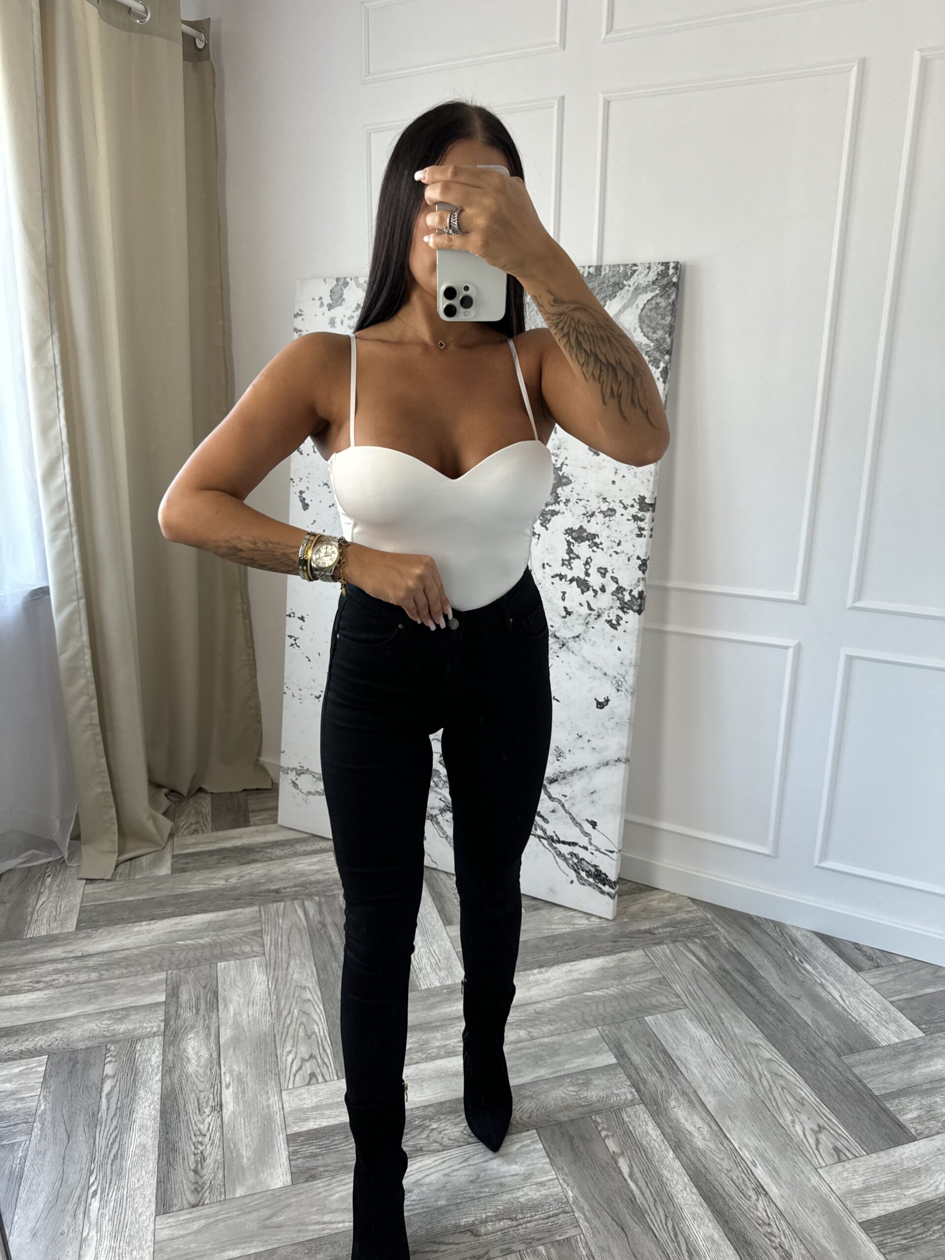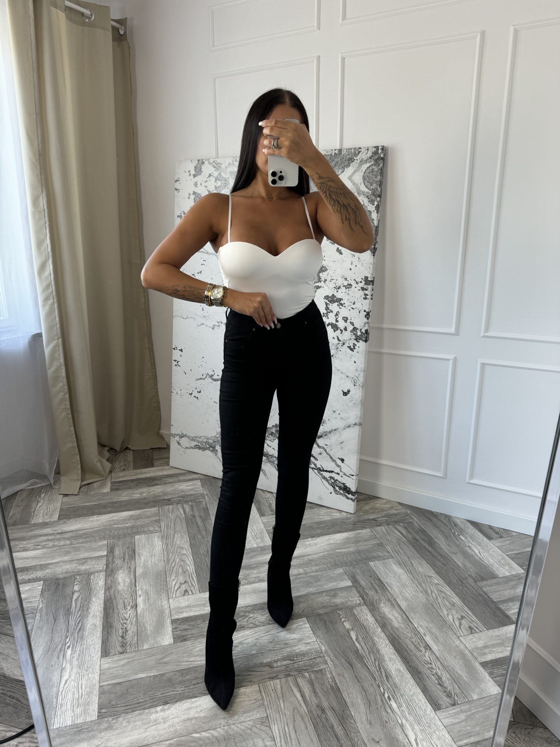 Top SHANNON w białym kolorze to esencja klasycznej elegancji i funkcjonalności. Wykonany z elastycznego materiału, top doskonale dopasowuje się do sylwetki, subtelnie podkreślając kobiece kształty. Wbudowane miseczki zapewniają wsparcie i komfort, czyniąc go idealnym wyborem na każdą okazję. Szelki dodają lekkości i nadają topowi nowoczesnego charakteru. Ten uniwersalny top świetnie komponuje się zarówno z jeansami, jak i eleganckimi spódnicami, pozwalając na tworzenie stylizacji na co dzień i na specjalne okazje.