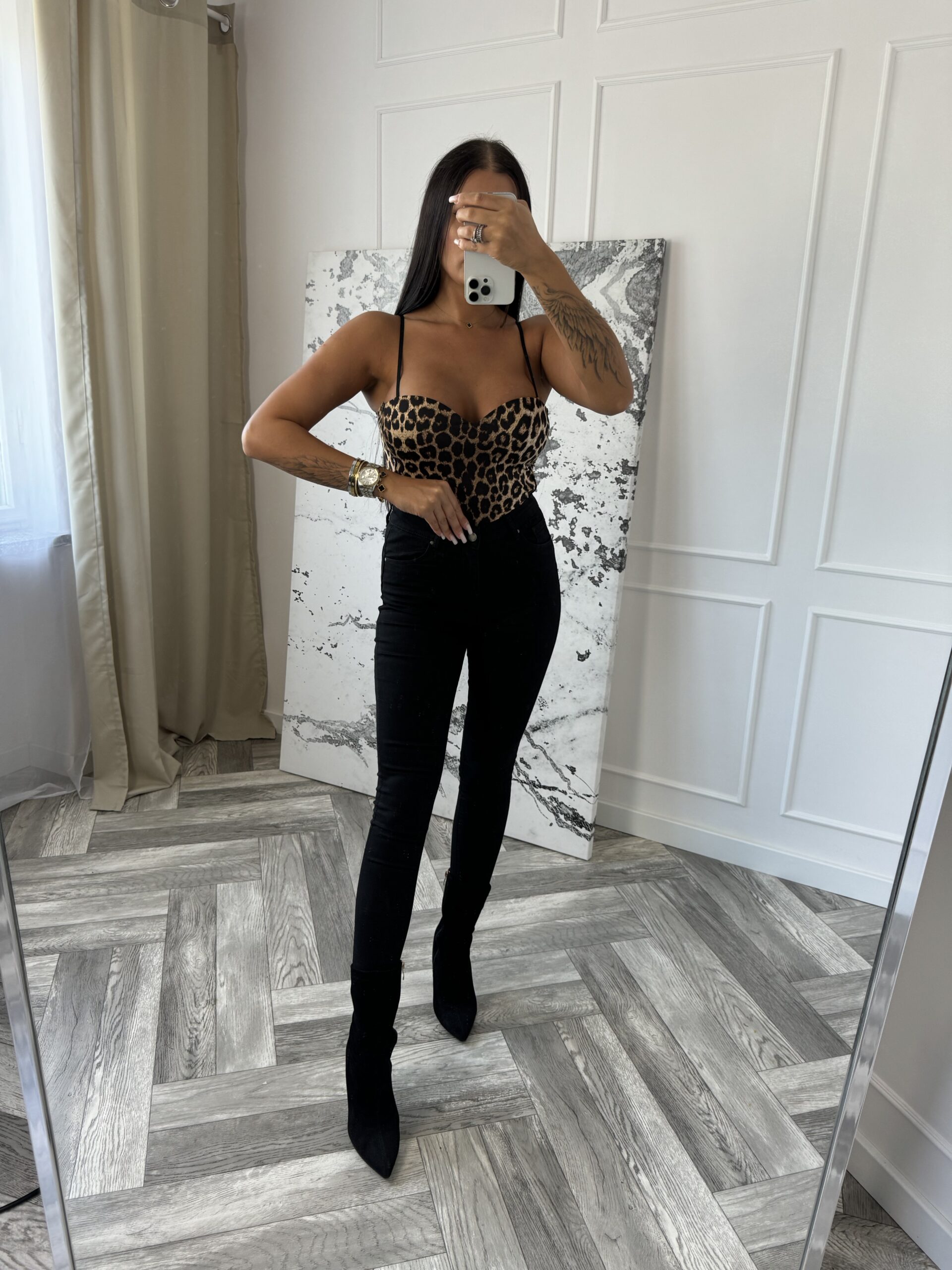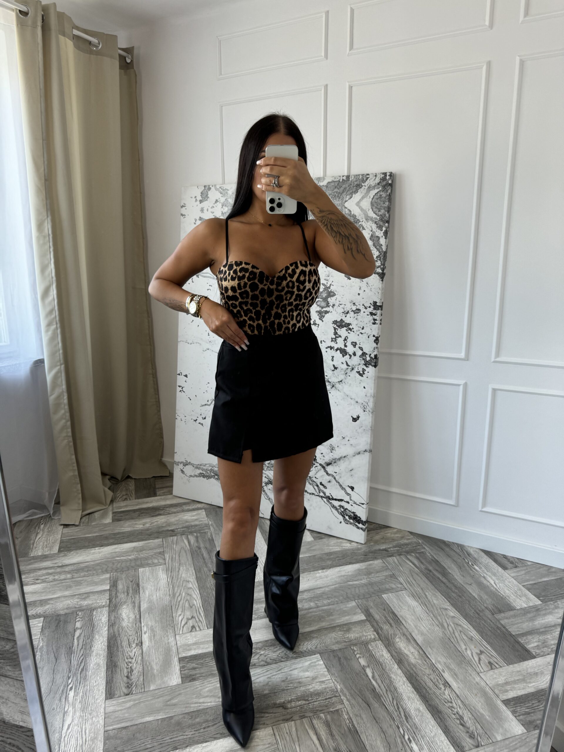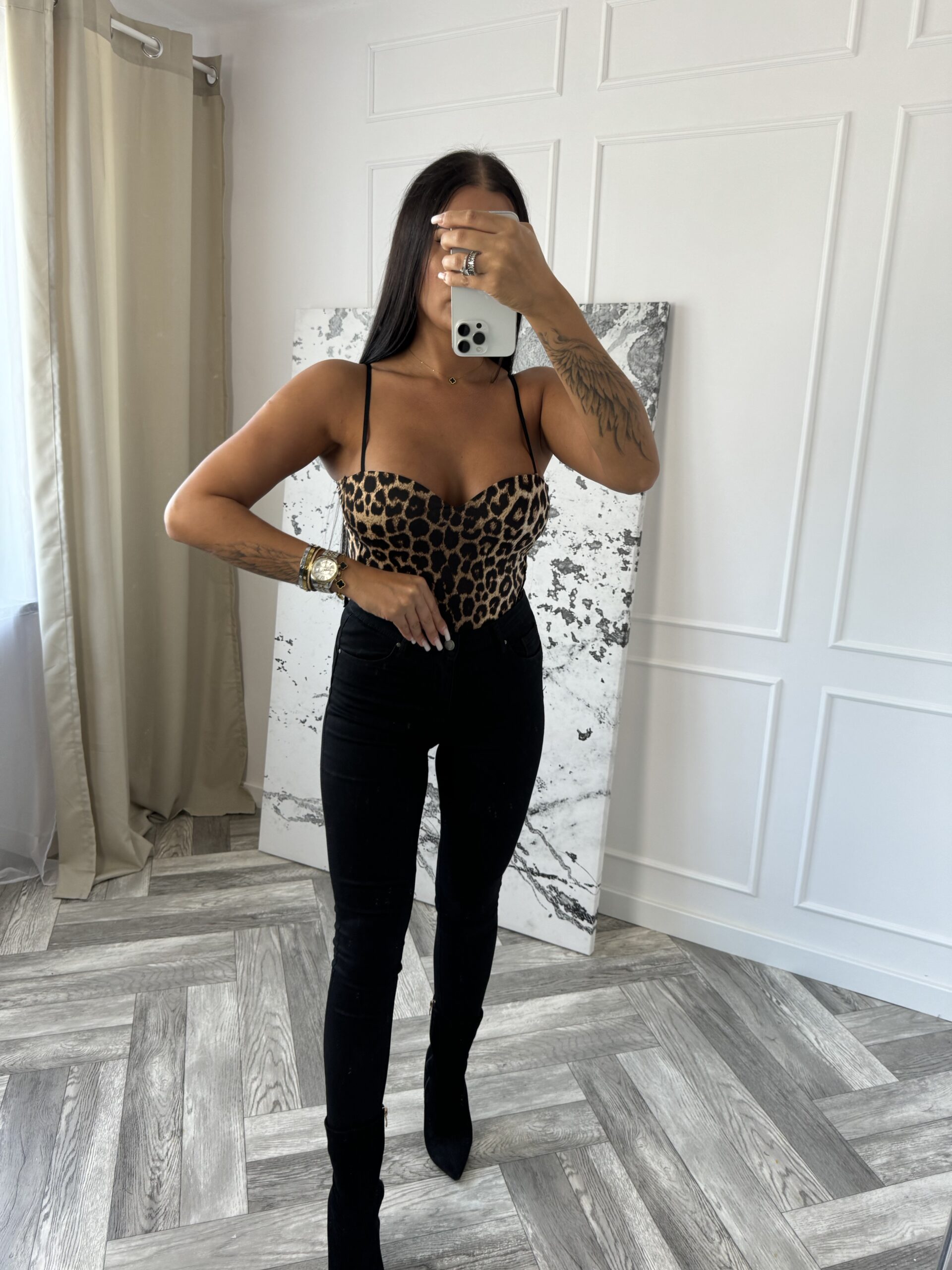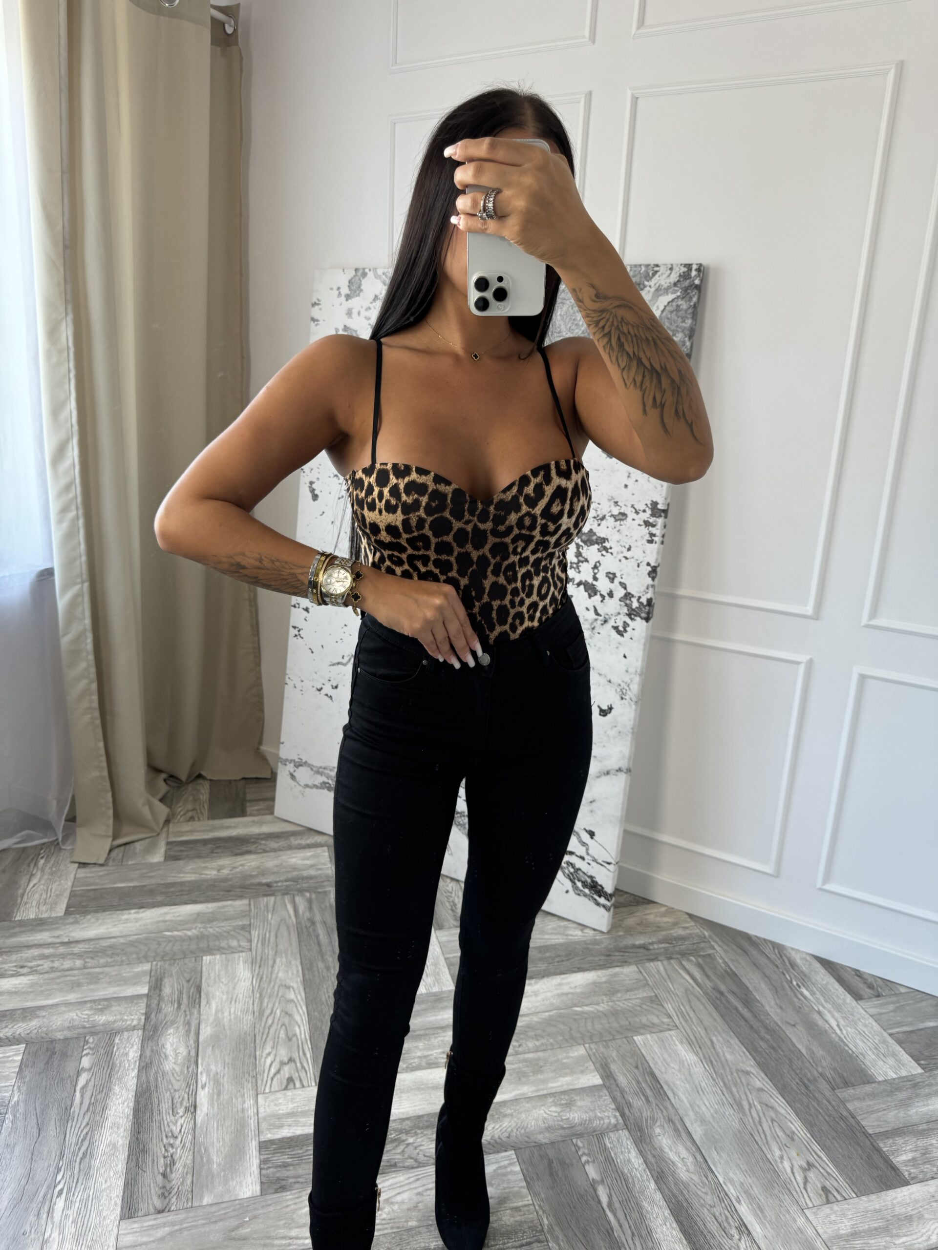 Top SHANNON to wyjątkowy element garderoby, który łączy w sobie zmysłowość i odważny styl. Wykonany z elastycznego materiału, doskonale dopasowuje się do sylwetki, podkreślając kobiece kształty. Miseczki zapewniają dodatkowe wsparcie i komfort, a wzór panterki dodaje topowi drapieżnego charakteru. Szelki sprawiają, że top jest lekki i przewiewny, idealny na letnie dni oraz wieczorne wyjścia. SHANNON to must-have dla kobiet, które pragną łączyć modny wygląd z wygodą.